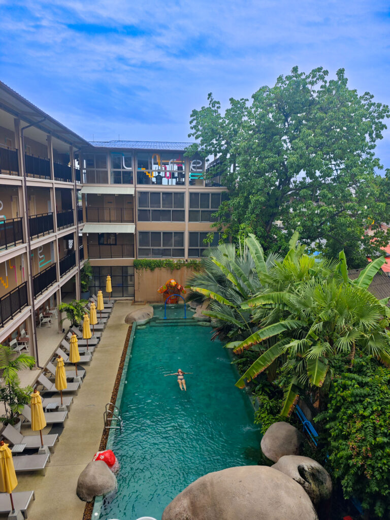 Der Pool im Centara Life Lamai Resort Samui ist modern, gepflegt und ideal für eine kleine Erfrischung zwischendurch. Er liegt zentral im Innenhof des Resorts und ist von hellen Gebäuden, tropischen Pflanzen und gemütlichen Sonnenliegen umgeben.